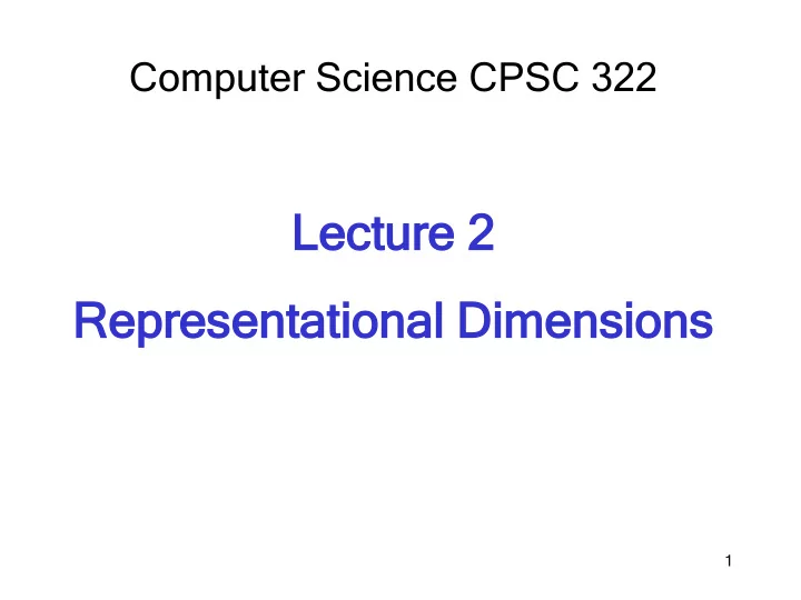 Computer Science CPSC 322 Le Lecture ture 2 Re Representational presentational Di Dimensions mensions 1