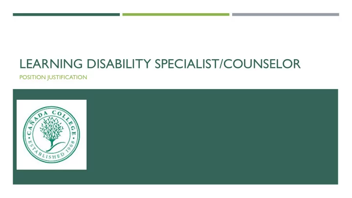 LEARNING DISABILITY SPECIALIST/COUNSELOR POSITION JUSTIFICATION