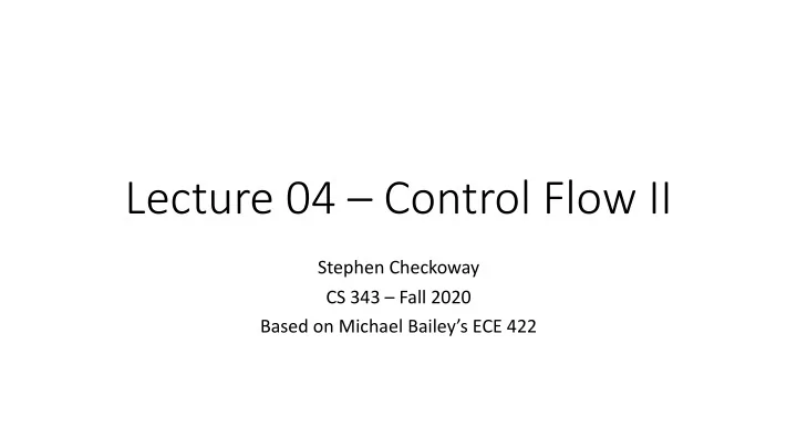 Lecture 04 – Control Flow II Stephen Checkoway CS 343 – Fall 2020 Based on Michael Bailey’s ECE 422