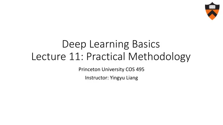 Deep Learning Basics Lecture 11: Practical Methodology Princeton University COS 495 Instructor: Yingyu Liang