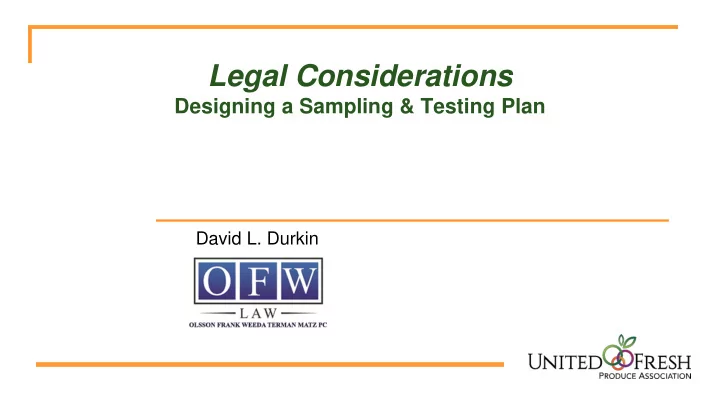 Legal Considerations Designing a Sampling & Testing Plan David L. Durkin