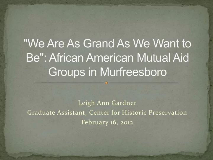 Leigh Ann Gardner Graduate Assistant, Center for Historic Preservation February 16, 2012