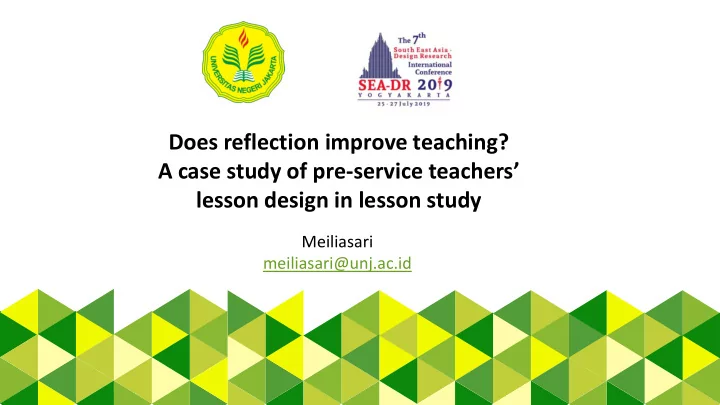 Does reflection improve teaching? A case study of pre- service teachers’ lesson design in lesson study Meiliasari meiliasari@unj.ac.id