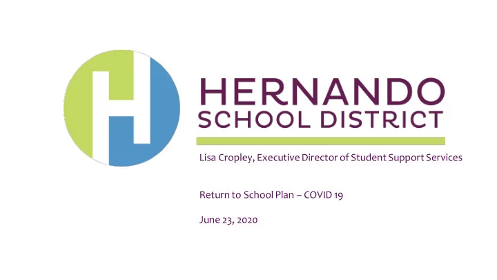 Lisa Cropley, Executive Director of Student Support Services Return to School Plan – COVID 19 June 23, 2020