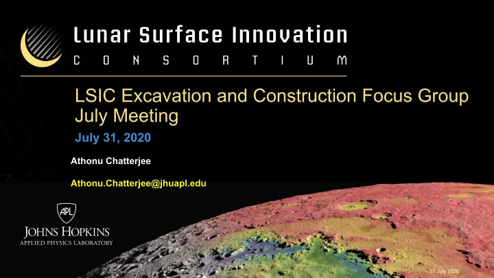 LSIC Excavation and Construction Focus Group July Meeting July 31, 2020 Athonu Chatterjee Athonu.Chatterjee@jhuapl.edu 31 July 2020 1