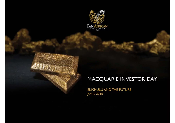 MACQUARIE INVESTOR DAY ELIKHULU AND THE FUTURE JUNE 2018