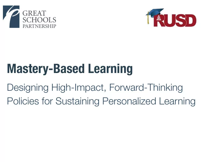 Mastery-Based Learning Designing High-Impact, Forward-Thinking Policies for Sustaining Personalized Learning