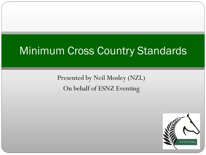 Minimum Cross Country Standards Presented by Neil Mosley (NZL) On behalf of ESNZ Eventing