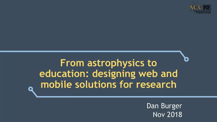 From astrophysics to education: designing web and mobile solutions for research Dan Burger Nov 2018