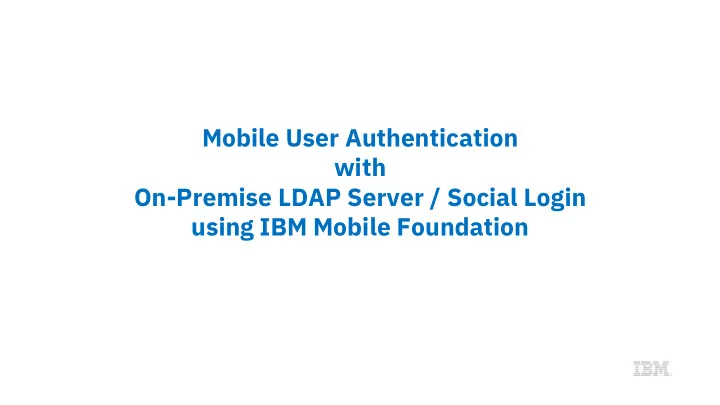Mobile User Authentication with On-Premise LDAP Server / Social Login using IBM Mobile Foundation