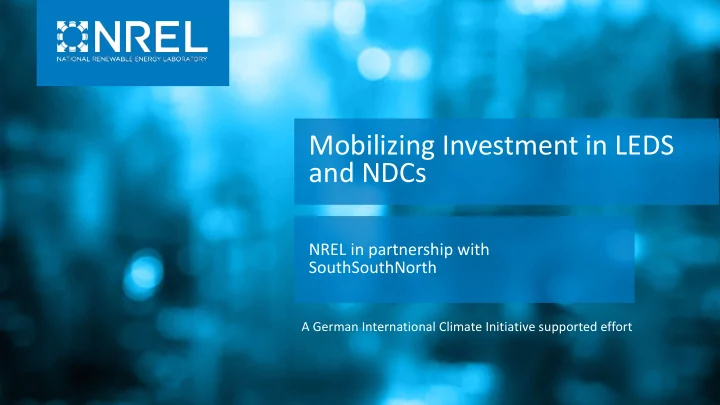Mobilizing Investment in LEDS and NDCs NREL in partnership with SouthSouthNorth A German International Climate Initiative supported effort