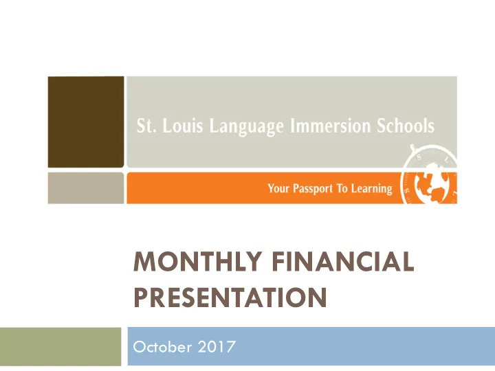 • St. Louis Language MONTHLY FINANCIAL PRESENTATION October 2017