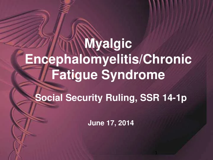 Myalgic Encephalomyelitis/Chronic Fatigue Syndrome Social Security Ruling, SSR 14-1p June 17, 2014 1