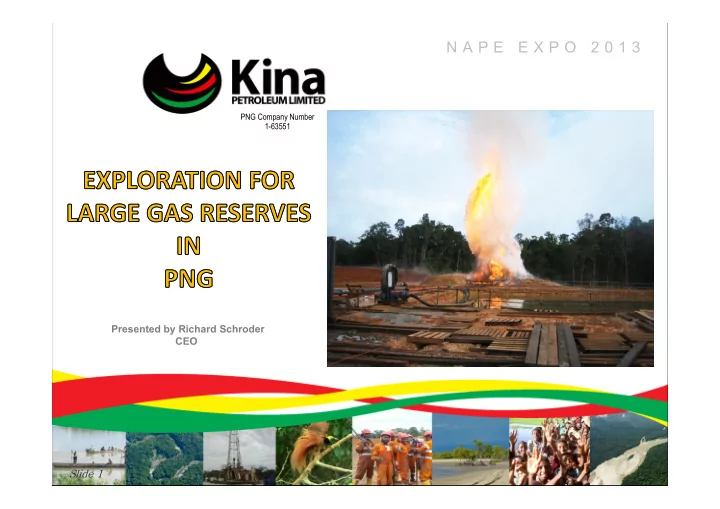N A P E E X P O 2 0 1 3 PNG Company Number 1-63551 Presented by Richard Schroder CEO Slide 1