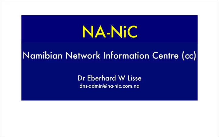 NA-NiC Namibian Network Information Centre (cc) Dr Eberhard W Lisse dns-admin@na-nic.com.na