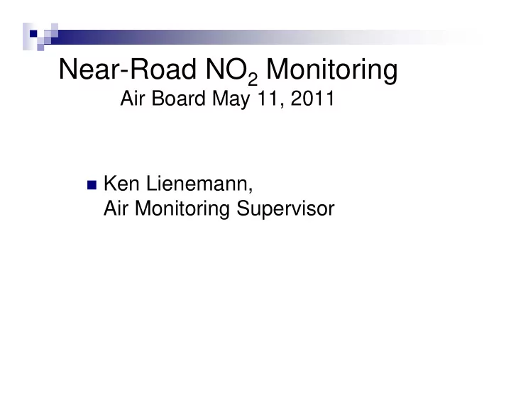 Near-Road NO 2 Monitoring Air Board May 11, 2011 � Ken Lienemann, Air Monitoring Supervisor