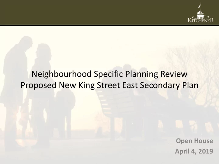 Neighbourhood Specific Planning Review Proposed New King Street East Secondary Plan Open House April 4, 2019