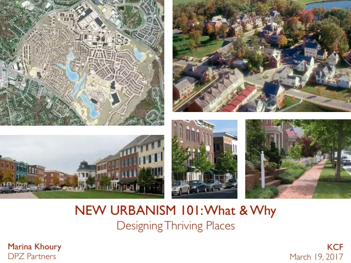 NEW URBANISM 101: What & Why Designing Thriving Places Marina Khoury KCF DPZ Partners March 19, 2017