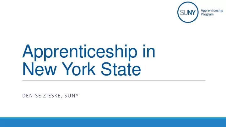 Apprenticeship in New York State DENISE ZIESKE, SUNY