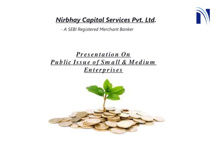 Nirbhay Capital Services Pvt. Ltd. - A SEBI Registered Merchant Banker Presenta tion On Pub lic Issue of Sm a ll & Med ium Enterp rises