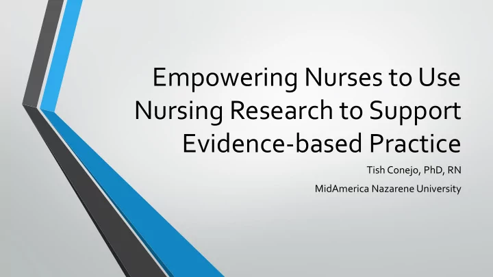 Empowering Nurses to Use Nursing Research to Support Evidence-based Practice Tish Conejo, PhD, RN MidAmerica Nazarene University