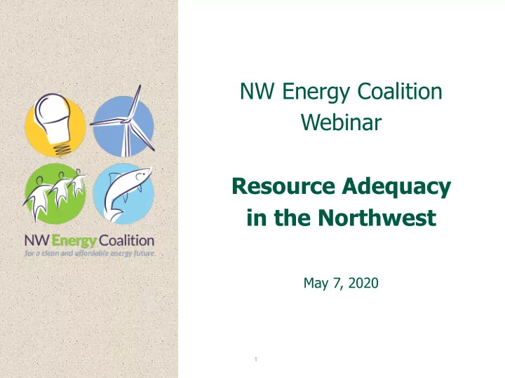 NW Energy Coalition Webinar Resource Adequacy in the Northwest May 7, 2020 1