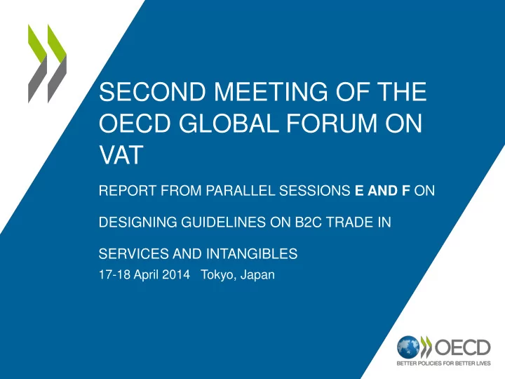 SECOND MEETING OF THE OECD GLOBAL FORUM ON VAT REPORT FROM PARALLEL SESSIONS E AND F ON DESIGNING GUIDELINES ON B2C TRADE IN SERVICES AND INTANGIBLES 17-18 April 2014 Tokyo, Japan