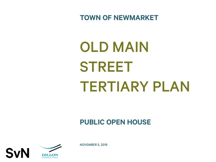 TOWN OF NEWMARKET OLD MAIN STREET TERTIARY PLAN PUBLIC OPEN HOUSE NOVEMBER 5, 2018