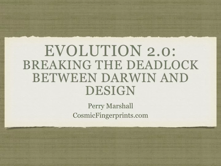 EVOLUTION 2.0: BREAKING THE DEADLOCK BETWEEN DARWIN AND DESIGN Perry Marshall CosmicFingerprints.com