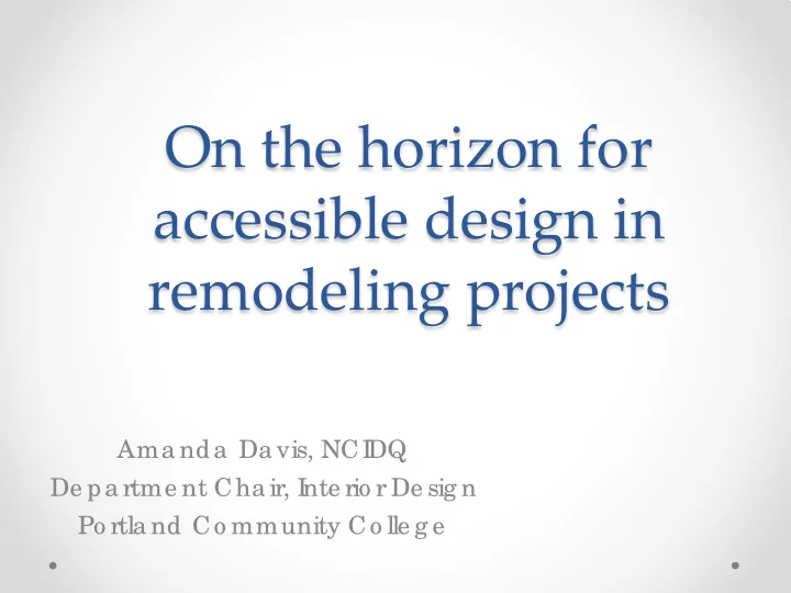 On the horizon for accessible design in remodeling projects Ama nda Da vis, NCI DQ De pa rtme nt Cha ir, I nte rio r De sig n Po rtla nd Co mmunity Co lle g e