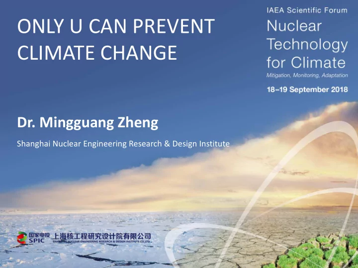 ONLY U CAN PREVENT CLIMATE CHANGE Dr. Mingguang Zheng Shanghai Nuclear Engineering Research & Design Institute