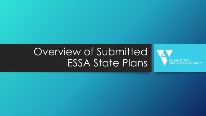 General Themes (Strengths & Weaknesses) Areas of Uncertainty • States aren’t saying much about intervention strategies • Exit criteria from identification are largely undefined • States plan to develop and explore different SQSS indicators that may not be evidence-based or disaggregated by subgroup (school climate surveys, socio-emotional skills, etc.) • School improvement