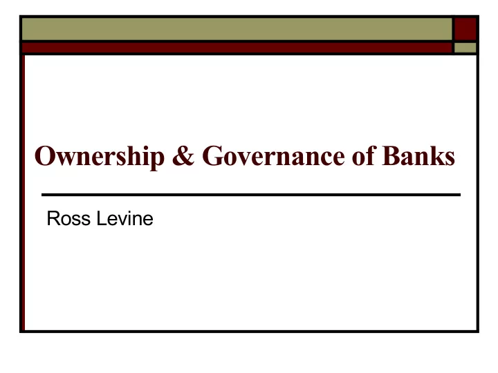 Motivation and goals o Banks profoundly influence growth & equity n Regulation has 1 st -order welfare implications o Designing appropriate regulations, requires understanding of bank governance. So: n Ownership structure n How ownership structure and regulations interact in affecting governance and risk taking.