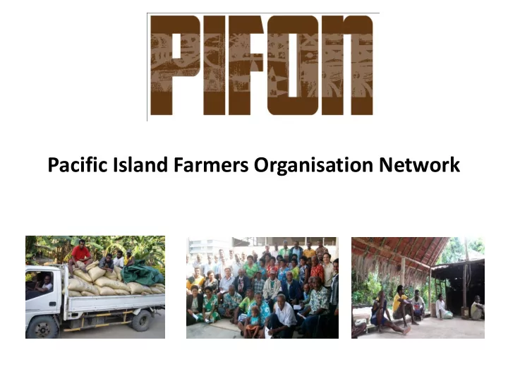 Who is PIFON? Network of farmer organisations that has been operating informally since 2008. Formally registered in 2013 by eighteen (18) foundation national FOs, from six (6) Island countries (Cook Is, Fiji, Samoa, Solomon Is, Tonga, Vanuatu,)