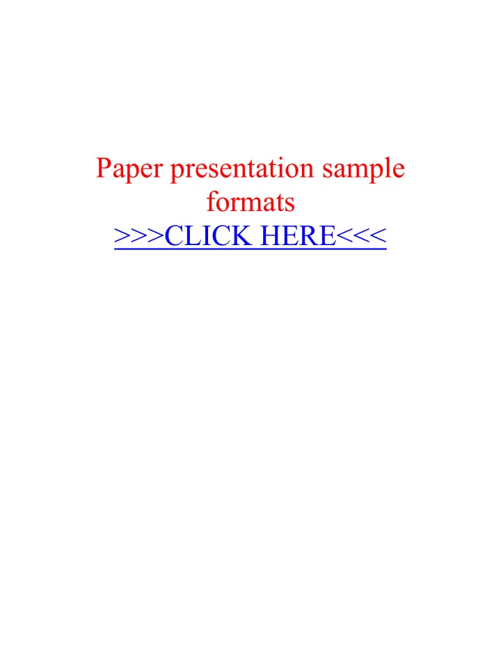 Paper presentation sample formats. The members do not have to pay money to register their websites, but with this option you will need to spend some time to generate traffic to your sites in return. If you are just getting your business off the ground, you probably could use some help getting your business Web site set up. Paper presentation sample formats >>>CLICK HERE<<< They provide information about the latest technology, methodologies, and techniques that can be utilized to make the business a huge success. The second reason it is important to find your market niche is that niche marketing is the best way to make money in the business world and especially on the internet. On top of that these sites gives you a money-back gurantee while you are learning online to make money from home. Sure, micropayments are generally more secure and more convenient compare to using other payment method.