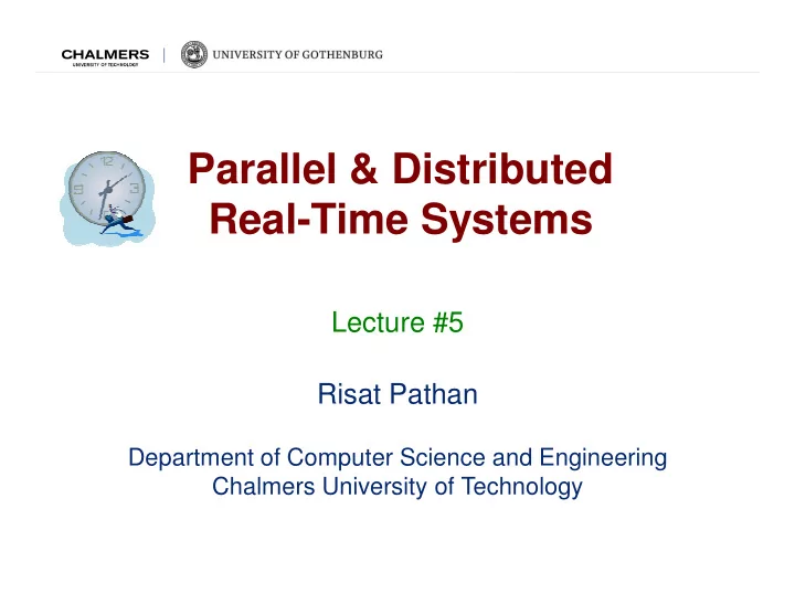 Parallel & Distributed Real-Time Systems Lecture #5 Risat Pathan Department of Computer Science and Engineering Chalmers University of Technology