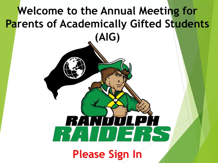 Welcome to the Annual Meeting for Parents of Academically Gifted Students (AIG) Please Sign In
