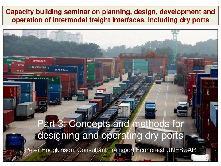 Capacity building seminar on planning, design, development and operation of intermodal freight interfaces, including dry ports Part 3: Concepts and methods for designing and operating dry ports Peter Hodgkinson, Consultant Transport Economist UNESCAP 1