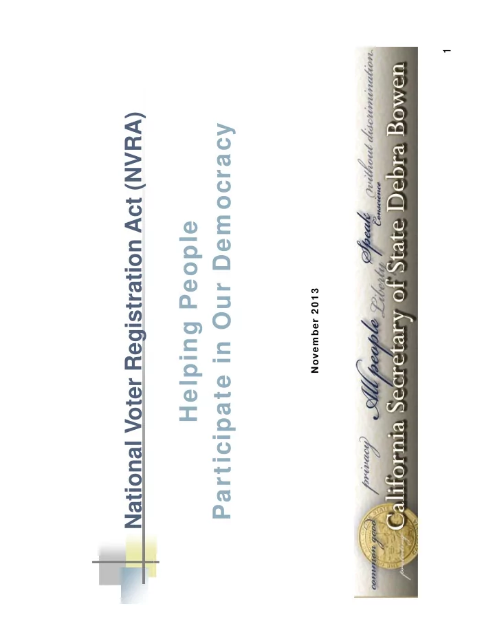 1 National Voter Registration Act (NVRA) Participate in Our Dem ocracy Helping People D Novem ber 2 0 1 3 t i O ti i P