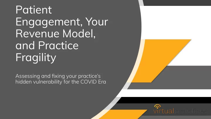 Patient Engagement, Your Revenue Model, and Practice Fragility Assessing and fixing your practice’s hidden vulnerability for the COVID Era