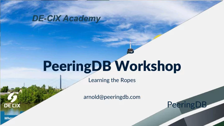 PeeringDB Workshop Learning the Ropes arnold@peeringdb.com PeeringDB