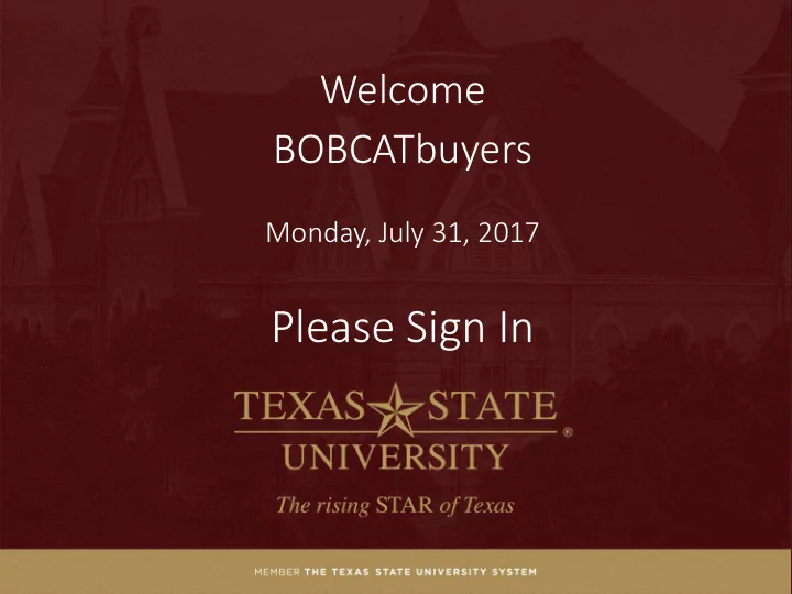 Welcome BOBCATbuyers Monday, July 31, 2017 Please Sign In