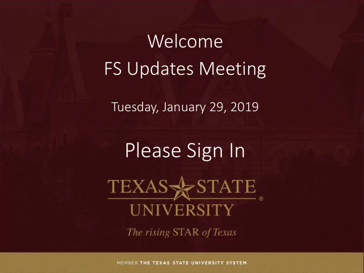 Welcome FS Updates Meeting Tuesday, January 29, 2019 Please Sign In