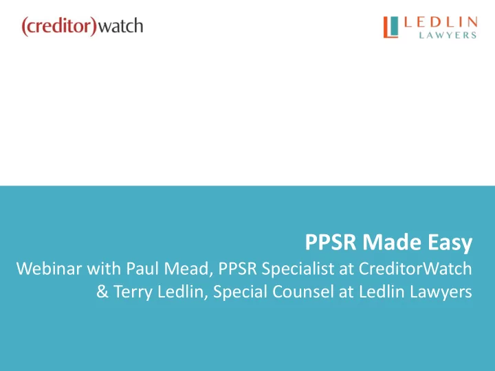 PPSR Made Easy Webinar with Paul Mead, PPSR Specialist at CreditorWatch & Terry Ledlin, Special Counsel at Ledlin Lawyers