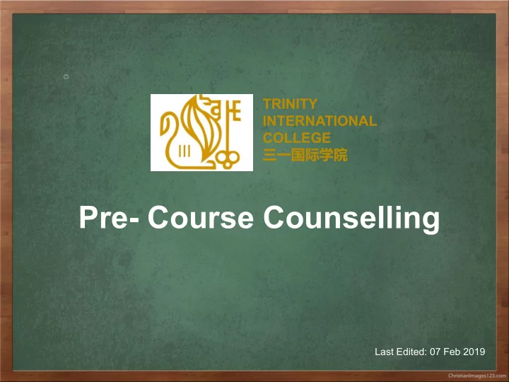TRINITY INTERNATIONAL COLLEGE 三一国际学院 Pre- Course Counselling Last Edited: 07 Feb 2019