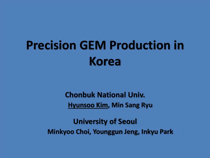 Precision GEM Production in Korea Chonbuk National Univ. Hyunsoo Kim, Min Sang Ryu University of Seoul Minkyoo Choi, Younggun Jeng, Inkyu Park