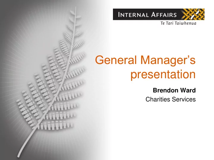 General Manager’s presentation Brendon Ward Charities Services