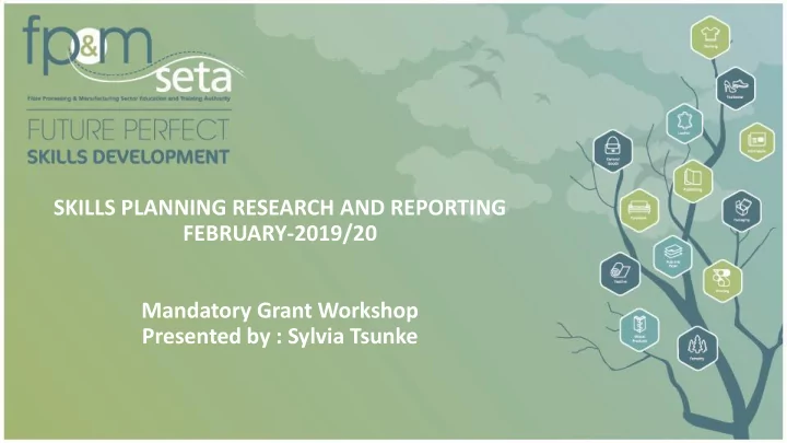 SKILLS PLANNING RESEARCH AND REPORTING FEBRUARY-2019/20 Mandatory Grant Workshop Presented by : Sylvia Tsunke