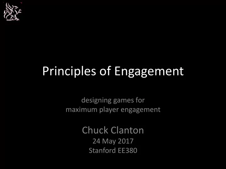 Principles of Engagement designing games for maximum player engagement Chuck Clanton 24 May 2017 Stanford EE380