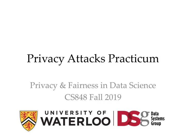 Privacy Attacks Practicum Privacy & Fairness in Data Science CS848 Fall 2019
